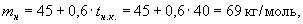 где рi - давление насыщенных паров i-той фракции в составе нефти; мм.рт.ст.; Pнас.н.п. - давление насыщенных паров i-той фракции в составе нефти при 100% ее содержании, мм.рт.ст.; Xi - мольная доля i-той фракции в составе нефти, мол. доли. Если данные о содержании в сырой нефти вышеуказанных прямогонных фракций отсутствуют, то целесообразно провести определение давления ее насыщенных паров, исходя из стандартов международных танкерных перевозок, ограничивающих это давление величиной 0,67 бар (примерно 500 мм.рт.ст. при стандартной в испытаниях по Рейду температуре 38°С). Определение молекулярной массы паров нефти проводится по формуле 2.1.7 методики [40]: