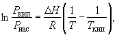 где: Ткип - температура начала кипения нефтепродукта, град. К; ΔН - мольная теплота испарения нефтепродукта, кДж/моль. б) По уравнению Клаузиуса-Клапейрона [49] рассчитывается температурная зависимость давления насыщенных паров нефтепродукта: