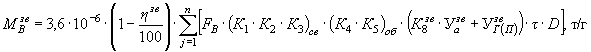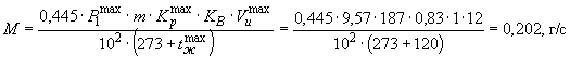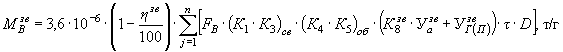 Для таких выбросов значение мощности, М (г/с), определяется следующим образом: