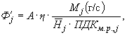 (корректировка формулы (4.10) с учетом (4.7) методики [30]), где n - число технологических операций, отличающихся временем τj, или количеством смен в году Dj. 4. Расчет максимального из разовых выбросов в атмосферный воздух ЗВ с учетом газоочистки и гравитационного оседания аэрозоля от f-го организованного источника для ТП группы (II) следует проводить по формуле (П.4.3):