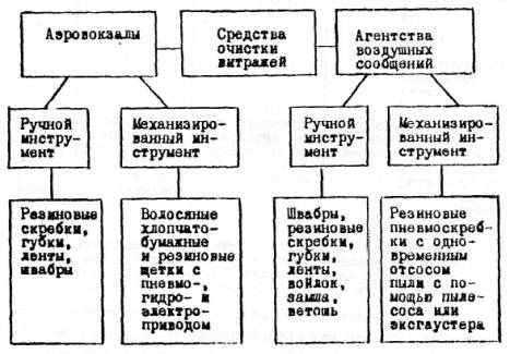 3.2. Рекомендуемые средства очистки витражей в зданиях аэровокзалов и агентств воздушных сообщений приведены на схеме (рис.1).