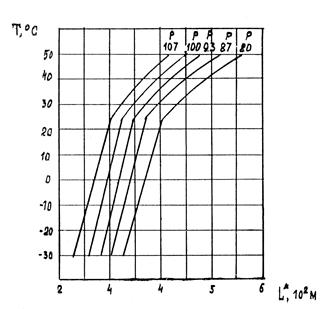 Длину участка L* для самолетов Ил-62, Ил-86, Ил-76 и Ту-154 при максимальных взлетных весах самолетов в различных расчетных условиях эксплуатации можно определить по номограммам рис. 2-5.