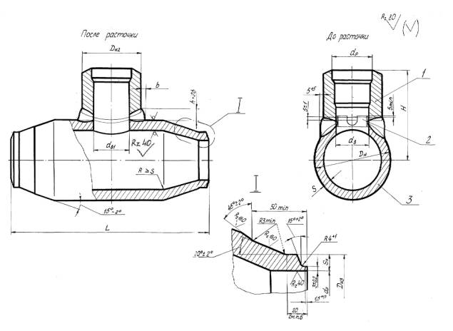 Указанием Министерства энергетического машиностроения от 04.06.82 № ВВ-002/4628 срок введения с 01.01.85 до 01.01.96 (Измененная редакция. Изм. № 1) (Измененная редакция. Изм. № 3) (Измененная редакция. Изм. № 4) Проверен в 1983 г. (Отметка введена дополнительно. Изм. № 1) 1. Настоящий стандарт распространяется на тройники сварные равнопроходные трубопроводов тепловых электростанций с абсолютным давлением Р=37,27 МПа (380 кгс/см2) и температурой воды t=280ºC. (Измененная редакция. Изм. № 3) 2. Конструкция и размеры сварных тройников должны соответствовать указанным на чертеже и в табл. 1, 2. 3. Сварочные материалы по ОСТ 108.940.02-82. 4. После сварки штуцер поз. 1 растачивается напроход до диаметра dв1 с целью удаления подкладного кольца и корня шва (см. чертеж). 5. Материал трубы поз. 3 - сталь 15ГС ТУ 14-3-460-75. 6. Размер прямого участка - рекомендуемый и уточняется технологическим процессом изготовителя. Допускается изготовление подкатанной части без прямых участков. 7. Остальные технические требования по ОСТ 24.125.60-89. (Измененная редакция. Изм. № 3) (Измененная редакция. Изм. № 4) 8. Масса наплавленного металла уточняется технологическим процессом. Пувкт 8. (Введен дополнительно. Изм. № 2)