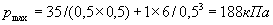 подошвы b = l = 0,9 м; R = В соответствии с рекомендациями п. 9.4 при эксцентриситете вертикальной нагрузки е= M/N = 1,1/35 = 0,031 м>1/30 = 0,9/30 = 0,03 м размеры подошвы должны определяться из условия (32), т.е. ограничения краевого давления рmax величиной 1,2R/0,9 = 66,4 кПа. По формуле (34) получаем