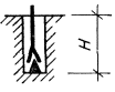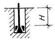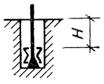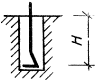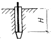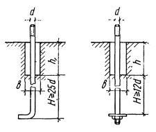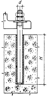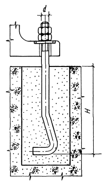 4.6. Глубина заделки болтов в фундаменты Н для шпилек из стали с расчетным сопротивлением растяжению Rар=1400 кгс/см2 и марки бетона фундамента 150 с расчетным сопротивлением растяжению Rр=6,3 кгс/см2 (в отличие от Rp=5,2 кгс/см2, принятого в СН 471-75 по СНиП II-В.1-62*) приведена в табл. 5. Таблица 5(4)