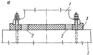 бесподкладочном методе монтажа оборудования (вид 2); в - с опиранием оборудования