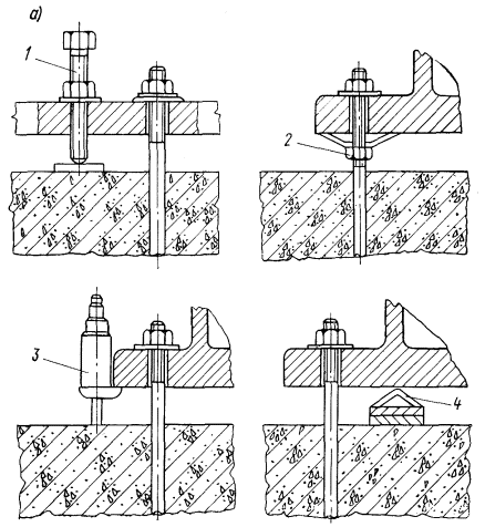 Рис. 10. Конструкции стыков фундамент-оборудование а