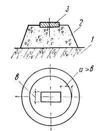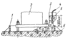 3.15. Временные опорные элементы следует располагать, исходя из удобства выверки оборудования с учетом исключения возможной деформации корпусных деталей оборудования от собственного веса и усилий предварительной затяжки гаек болтов. 3.16. Постоянные (несущие) опорные элементы следует размещать на возможно близком расстоянии от болтов. При этом опорные элементы могут располагаться как с одной стороны, так и с двух сторон болта. 3.17. Закрепление оборудования в выверенном положении должно осуществляться путем затяжки гаек болтов в соответствии с рекомендациями раздела 7 настоящего Руководства. 3.18. Опорная поверхность оборудования в выверенном положении должна плотно прилегать к опорным элементам, отжимные регулировочные винты - к опорным пластинам, а постоянные опорные элементы - к поверхности фундамента. Плотность прилегания проверяется щупом толщиной 0,1 мм. ВЫВЕРКА ОБОРУДОВАНИЯ С ПОМОЩЬЮ РЕГУЛИРОВОЧНЫХ ВИНТОВ3.19. Опорные пластины (рис. 12) устанавливают на фундамент в соответствии с расположением регулировочных винтов в опорной части оборудования. Места расположения опорных пластин на фундаментах выравнивают по горизонтали с отклонением не более 10 мм на 1 м. 3.20. Перед установкой оборудования на фундаменте размещают вспомогательные опоры, на которые опускают оборудование. 3.21. При опускании оборудования на фундамент без вспомогательных опор регулировочные винты должны выступать ниже установочной поверхности оборудования на одинаковую величину, но не более чем на 20 мм. 3.22. Положение оборудования по высоте и горизонтали следует регулировать поочередно всеми отжимными винтами, не допуская в процессе выверки отклонения оборудования от горизонтали более чем на 10 мм на 1 м. 3.23. После завершения выверни оборудования положения регулировочных винтов необходимо фиксировать стопорными гайками. 3.24. Перед подливкой резьбовую часть регулировочных винтов, используемых многократно, следует предохранить от соприкосновения с бетоном посредством обертывания плотной бумагой. 3.25. Перед окончательной затяжкой фундаментных болтов регулировочные винты должны бить вывернуты на 2-3 оборота. При повторном использовании винты выворачивают полностью. Оставшиеся отверстия (во избежание попадания масла) заделывают резьбовыми пробками или цементным раствором, поверхность которого покрывают маслостойкой краской. ВЫВЕРКА ОБОРУДОВАНИЯ НА ЖЕСТКИХ ОПОРАХ (БЕТОННЫХ ПОДУШКАХ)3.26. Жесткие опоры (рис. 13) изготавливают непосредственно на фундаментах с точностью, соответствующей допускаемым отклонениям положения оборудования по высоте и горизонтали. На жестких опорах выверяют оборудование с механически обработанными опорными поверхностями. После опускания на опоры оборудования его выверяют в плане и закрепляют. 3.27. Для изготовления жестких опор следует применять бетон марки не ниже М200 с заполнителем в виде щебня или гравия фракции 5-12 мм. 3.28. Удельное давление от веса оборудования на опору не должно превышать 50 кгс/см2. 3.29. Для изготовления опор в специальную опалубку на предварительно очищенную и увлажненную поверхность фундамента укладывают порцию бетонной смеси до уровня, на 1-2 см превышающего требуемую отметку. Затем излишки смеси удаляют и выравнивают поверхность опор. 3.30. Для повышения точности бетонных опор на них укладывают металлич