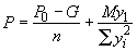 4.10. В случае если задана нагрузка от оборудования, то величина расчетной нагрузки Р определяется для наиболее нагруженного болта по формуле 4.11. Допускается принимать, что ось поворота оборудования проходит через центр тяжести опорной поверхности оборудования. 4.12. (4.10) Для болтов, устанавливаемых без контроля усилия затяжки, подбор площади сечения болтов по прочности допускается производить по формуле Съемные болты с изолирующей трубой (типы болтов 6-8) устанавливать без контроля усилия затяжки не допускается. 4.13. (4.11). При динамических нагрузках площадь сечения болтов, вычисленную по формуле (6) или (8), необходимо проверить на выносливость по формуле 4.14. (4.12). Площадь сечения болтов для восприятия сдвигающих усилий определяется по формуле