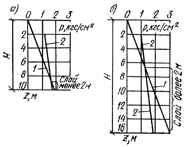 б) уменьшение глубины заложения фундаментов до пределов, допустимых по условиям деформаций и несущей способности оснований;