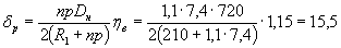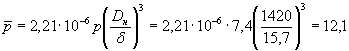 Здесь Δ - амплитудное значение изменения половины номинального диаметра трубы, равное одной четвертой разности максимального и минимального диаметров трубы, измеренных в одном сечении при отсутствии давления в трубе: