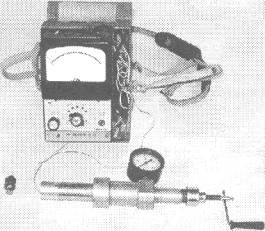 Получаемая информация Результаты измерений коэрцитивной силы изделий, рассредоточенных по месту пожара, наносятся на план места пожара, после чего вычерчиваются зоны термических поражений, как при ультразвуковом методе исследования бетона и железобетона. Зона наибольших термических поражений соответствует наименьшим значениям коэрцитивной силы или тока размагничивания. Метод работоспособен в интервале температур от 150-200 до 700-800 °С. Полученные данные используются при поисках очага пожара [19, 20]. Вихретоковый метод Вихретоковое зондирование стальных изделий проводится в целях измерения электрических параметров, величина которых коррелирует с толщиной окалины на поверхности стали. Объекты исследования Горячекатаные и холоднодеформированные стальные конструкции и изделия. Применяемый прибор Прибор "Вихрь", входящий в комплект оборудования для работы на месте пожара "Сириус". Краткая методика работы На месте пожара намечаются конструкции для обследования; составляется план исследуемой зоны пожара в масштабе; на конструкциях намечаются участки, в которых будет производиться исследование. В намеченных точках проводится 5-6 параллельных измерений с расчетом среднего результата (время одного измерения 5-10 с). Получаемая информация Распределение зон термических поражений стальных конструкций и изделий на месте пожара. В отличие от коэрцитиметров, исследованию могут подвергаться не только холоднодеформированные, но и горячекатаные изделия (а их на месте пожара гораздо больше). Однако работает метод только в высокотемпературных зонах (от 700°С и выше). 12.3. Исследование обугленных остатков древесины и полимерных материаловОпределение электросопротивления углей Измерение электрического сопротивления постоянному току порошкообразных проб обугленных остатков органических материалов проводится под давлением 3500-5000 кг/см2. Объекты исследования - Обугленные деревянные конструкции и элементы конструкций. - Обугленные остатки древесностружечных плит. - Обугленные остатки полимерных материалов и изделий (линолеум, изоляция проводов и др.). Применяемые приборы Для измерений может быть использован любой электроизмерительный прибор, определяющий величину электрического сопротивления постоянному току в пределах от 1-10 до 108-1010 Ом. В частности, могут использоваться мегомметры (Е6-16 и др.) (рис. 12.3), измерительные мосты.