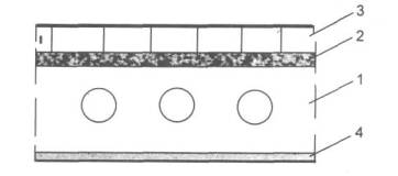 Рис. П. 1.7. Железобетонное перекрытие: 1 - железобетонная плита; 2 - слой парозвукоизоляции; 3 - покрытие пола(чистый пол) (доска, паркет, линолеум, плитка); 4 - декоративное покрытие потолка нижнего этажа (штукатурка, водно-дисперсионная краска)
