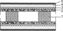 Рис. П. 1.10. Деревянная пустотная перегородка: 1- стойки каркаса перегородки;2 - доски обшивки; 3 - металлическая штукатурная сетка, дранка; 4 - штукатурка; 5 - наружное декоративное покрытие (краска, обои и др.)