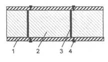 Рис. П. 1.12. Гипсокартонная перегородка: 1 - обшивка (лист гипсокартонный); 2 - утеплитель (минераловатные плиты и др.); 3 - каркас - стальной оцинкованный профиль; 4 - нащельник