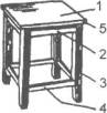 Рис. П. 1.21. Табуретка: 1 - сидение; 2 - брусок обвязки; 3 - ножка; 4 - проножка; 5 - кромка сидения