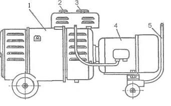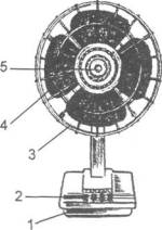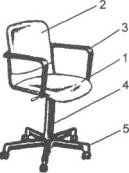 Рис. П. 1.22. Кресло рабочее вращающееся: 1 - сиденье; 2 - спинка; 3 - подлокотники; 4 - станина (ножка); 5 - опора на роликах