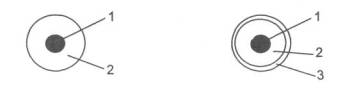 Рис. П. 1.33. Одножильные, однопроволочные провода круглого сечения: 1 - жила (медная, алюминиевая, алюмомедная); 2 - изоляция (резина, ПВХ); 3 - оплетка (хлопчатобумажная пряжа) или оболочка (ПВХ)