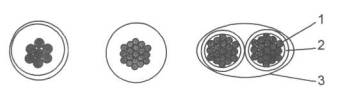 Рис. П. 1.34. Многопроволочные одножильные и многожильные провода круглого сечения: 1 - жила многопроволочная; 2 - изоляция; 3 - оболочка или оплетка