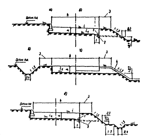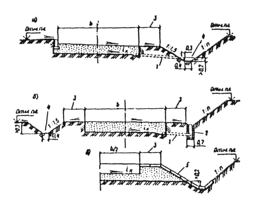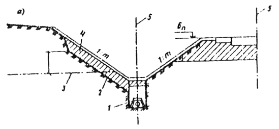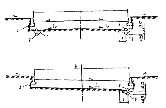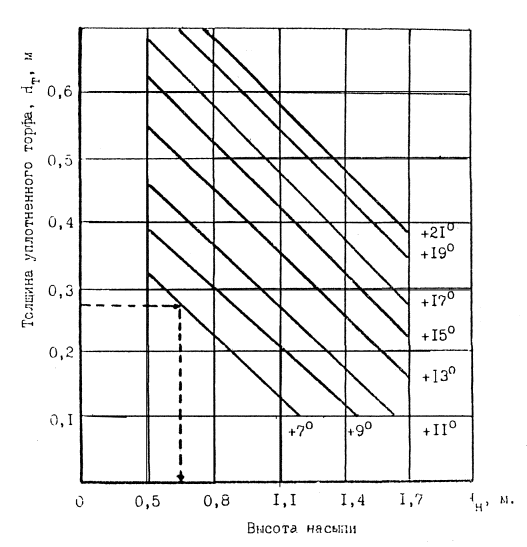При Н > 3 м; Где ρстр и ρест - плотность талых грунтов тела насыпи и основания в строительный период; ρэн и ρэо - плотность талых грунтов тела насыпи и основания в эксплуатационный период. 2.48. Запас по высоте насыпей следует назначать (при отсылке в зимнее время) в случаях, если в верхнем сезонно-оттаивающем слое толщиной около 2 м, отсыпаны сухомерзлые или талые с примесью мерзлых комьев грунты и если насыпи высотой менее 2 м отсыпаны на мерзлые термопросадочные грунты основания. Величина запаса на высоту ΔН определяется по формуле 2.49. Относительную осадку насыпи при оттаивании грунтов можно ориентировочно принимать для сыпучемерзлых грунтов 1-2% и сухомерзлых 3-7% от ее высоты. При заготовке твердомерзлых грунтов в буртах коэффициент разрыхления грунтов ориентировочно принимает равным 1,15-1,20. 2.50. Осадку грунтов основания насыпей высотой до 2 м, при проектировании линий в Северо-Восточном регионе СССР, Полярном Урале, Ямале и Западной Сибири можно назначать по данным приложения 10, составленного по фактическим замерам, применительно к ландшафтным комплексам, пересекаемых трассой. Границы последних следует устанавливать по данным ландшафтно-геоботанической съемки при изысканиях. 2.51. Минимальную высоту берм следует назначать исхода из условия сохранения под ними "новообразованной мерзлоты", а ширину принимают не менее I м, приложение 12, рис.2. 2.52. На участках примыкания насыпей к искусственным сооружениям допускается (в отдельных случаях, по расчету) укладка вентилируемых труб с целью сохранения грунтов в мерзлом "новообразованном" состоянии. При этом конструкции земляного полотна разрабатываются по индивидуальному проекту. 2.53. При проектировании земляного полотна вдоль наземных или подземных коммуникаций нефте-газопроводов, водопровода, труб для производственных стоков в проекте следует разрабатывать мероприятия по защите грунтов земляного полотна от переувлажнения и возможных его деформаций в результате нарушения водно-теплового режима вечномерзлых грунтов. 2.54. Для отвода поверхностной воды от земляного полотна, устраиваемого на территории промышленного предприятия, а также на участках с небольшим залеганием подземных вод, в проекте должны предусматриваться дренажи с продольным уклоном дна 0,5-3% с укладкой в них трубофильтров диаметром не менее 150 мм. При среднемесячной температуре наружного воздуха наиболее холодного месяца ниже 15°С следует предусматривать утепление дренажей и лотков, приложение 12, рис.9. 2.55. Крутизну откосов насыпей в проекте следует назначать: 1:1,5 - при сооружении их из среднезернистых песков; 1:1,75 - при возведении верхней части насыпи, выше капиллярного поднятия - из мелких однородных пылеватых песков; 1:2- при отсыпке нижней части насыпи на высоту капиллярного поднятия, - из среднезернистых песков, на сырых и мокрых основаниях из грунтов I и II категорий по термопросадочности; 1:3 - для нижней части насыпи, возводимой из пылеватых песков на сырых и мокрых грунтах III и IV по термопросадочности; для откосов насыпей высотой 1,5-3,0 м проектируемых из условия их снегозаносимости; на ландшафтах с льдонасыщенными грунтами (Лв > 0,4); 1:4-1:7 - для откосов снегонезаносимых выемок. 2.56. Откосы насыпей на участках пересечения трассой термокарстовых озер при расчетной длине разгона волны в водотоке более 0,5 м следует укрепл
