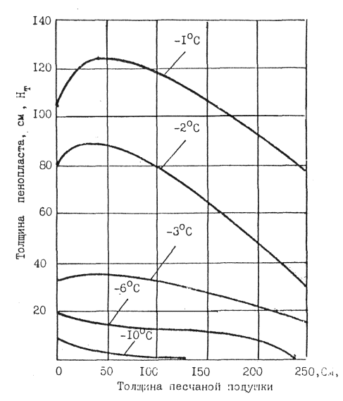 Примечание: меньшие значения применяются для асфальтобетонных, а большие - для цементобетонных покрытий. 4.12. При проектировании земляного полотна но первому принципу строительства рекомендуется для сохранения "новообразованной" мерзлоты применять в конструкциях пенопласт различных марок, укладываемого в основаниях, толщиной приведенной в табл.4.3, либо по приложению 22. Типовые конструкции земляного полотна с применением пенопласта приведены в приложении 13, рис.2. Таблица 4.3Марки пенопласта и его толщина, применяемого при высота Нн насыпей, см