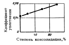 Рис.5. Зависимость коэффициента уплотнения от степени консолидации