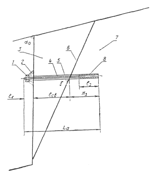 Рис. 6. Схема закрепления неустойчивого скального массива анкером: