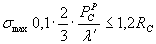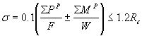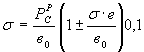 где ΣРр - алгебраическая сумма всех вертикальных расчетных сил; F - площадь основания фундамента по подошве; ΣМр - алгебраическая сумма расчетных моментов; W - момент сопротивления подошвы фундамента. * - Формула представлена с учетом измерения напряжений в кГс/см2. Положение равнодействующей, характеризуемое относительным эксцентриситетом, должно удовлетворять условию
