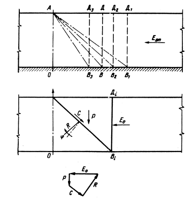 прямоугольного характера эпюры оползневого давления и равенства расчетного и