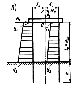 Формула (31) применима также и в тех случаях, когда в конструктивной схеме поддерживающего сооружения не предусматривается устройство подпорной стены на плите ростверка.