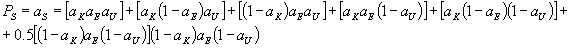 где Р(S|Ai) - вероятность того, что система функционирует в состоянии Аi, Р(Ai) - вероятность того, что система находится в состоянии Ai. Подставляя коэффициенты готовности а вместо вероятностей Р, получаем: