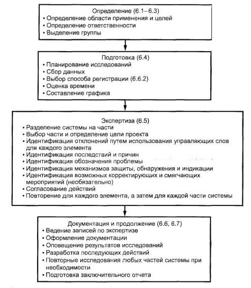 Предисловие Цели и принципы стандартизации в Российской Федерации установлены Федеральным законом от 27 декабря 2002 г. № 184-ФЗ «О техническом регулировании», а правила применения национальных стандартов Российской Федерации - ГОСТ Р 1.0-2004 «Стандартизации в Российской Федерации. Основные положения» Сведения о стандарте 1. ПОДГОТОВЛЕН Открытым акционерным обществом «Научно-исследовательский центр контроля и диагностики технических систем» (ОАО НИЦ КД) на основе собственного аутентичного перевода стандарта, указанного в пункте 4 2. ВНЕСЕН Управлением развития, информационного обеспечения и аккредитации Федерального агентства по техническому регулированию и метрологии 3. УТВЕРЖДЕН И ВВЕДЕН В ДЕЙСТВИЕ Приказом Федерального агентства по техническому регулированию и метрологии от 30 сентября 2005 г. № 235-ст 4. Настоящий стандарт является модифицированным по отношению к международному стандарту МЭК 61882:2001 «Исследование опасности и работоспособности (HAZOP). Руководство по применению» (IEC 61882:2001 «Hazard and operability studies (HAZOP studies) - Application guide») путем внесения технических отклонений, объяснение которых приведено во введении к настоящему стандарту. Наименование настоящего стандарта изменено относительно наименования указанного международного стандарта для приведения в соответствие с ГОСТ Р 1.5-2004 (подраздел 3.5). Изменения, введенные в настоящий стандарт по отношению к международному стандарту, обусловлены необходимостью наиболее полного достижения целей национальной стандартизации 5. ВВЕДЕН ВПЕРВЫЕ Информация об изменениях к настоящему стандарту публикуется в ежегодно издаваемом информационном указателе «Национальные стандарты», а текст изменений и поправок - в ежемесячно издаваемых информационных указателях «Национальные стандарты». В случае пересмотра (замены) или отмены настоящего стандарта соответствующее уведомление будет опубликовано в ежемесячно издаваемом информационном указателе «Национальные стандарты». Соответствующая информация, уведомление и тексты размещаются также в информационной системе общего пользования - на официальном сайте национального органа Российской Федерации по стандартизации в сети Интернет. Содержание Введение Целью настоящего стандарта является описание принципов и процедур исследования опасности и работоспособности. Исследование HAZOP* используют для: - идентификации потенциальных опасностей в системе. Рассматриваемые опасности могут включать как опасности, касающиеся только самой системы, так и опасности со значительно более широкой сферой распространения, например, опасности для окружающей среды; - идентификации потенциальных проблем работоспособности системы и, в частности, причин эксплуатационных нарушений и отклонений в производстве, приводящих к изготовлению несоответствующей продукции. Результаты исследований HAZOP, такие как идентификация потенциальных опасностей и проблем работоспособности, оказывают существенную помощь в определении необходимых корректирующих мероприятий. Характерная особенность исследования HAZOP - проведение экспертизы, в процессе которой группа специалистов в различных научных дисциплинах под руководством лидера систематически исследует соответствующие части проекта или системы. Она идентифицирует отклонения от целей проекта системы, использу