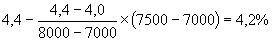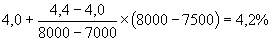 Следует определить процент базовой цены проектирования объекта, стоимость строительства которого составляет 7500 млн.руб. Формула расчета следующая: