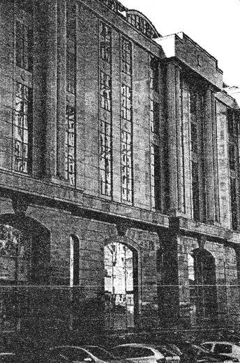 Рис. 1.3. Новинский пассаж, г. Москва 3. Конструктивное решение систем3.1. Система «Стоун-Строй» является многослойной конструкцией, которая крепятся с внешней стороны несущих конструкций наружной стены (основания) и состоит из несущего каркаса, слоя негорючего минераловатного утеплителя, укрытого, в случае необходимости, пленкой "TYVEK"*) и облицовочного слоя (экрана). Между слоями утеплителя и облицовки устраивается вентилируемый воздушный зазор, с помощью которого влага, накапливающаяся в утеплителе, может эффективно удаляться (рис. 3.1-3.2). *)пленка на чертежах условно не показана. 3.2. Возможно применение системы «Стоун-Строй» только для фасадной отделки зданий. В этом случае слой утеплителя отсутствует. 3.3. Несущий каркас системы «Стоун-Строй» включает кронштейны (уголки), вертикальные несущие профили (швеллеры), Z-образные элементы и регулируемые ручки. 3.3.1. Кронштейны крепят к основанию анкерными дюбелями через парони-товую прокладку, после чего к их свободным концам присоединяют вертикальный профиль и все остальные элементы фасадной облицовки здания. Кронштейны функционально выполняются несущими и фиксирующими. Несущие воспринимают вертикальные и горизонтальные нагрузки, фиксирующие - только горизонтальные. Каждый узел крепления состоит из двух одинаковых кронштейнов. Кронштейны изготавливаются в форме уголка с полками разной длины. На короткой полке уголка предусмотрены отверстия под анкерный дюбель для крепления кронштейна к основанию, на длинной - для крепления вертикального профиля. Отверстия выполнены овальной и круглой формы. Отверстия овальной формы позволяют вертикальному профилю перемещаться вследствие температурных деформаций. Кронштейны отличаются длиной консольной части, что позволяет применять слой утеплителя разной толщины, зависящей от коэффициента теплопроводности применяемых минераловатных плит, а также материала и толщины наружных стен. В системе приняты кронштейны с длиной консольной части от 40 до 200 мм. Толщина кронштейнов от 4 до 6 мм (рис. 3.3-3.4). Узел крепления кронштейна «Стоун-Строй» к несущей стене показан на рис. 3.8. 3.3.2. В системе «Стоун-Строй» применяют в качестве вертикальных профилей швеллеры из нержавеющей стали размерами от 40×40 мм до 200×50 мм и толщиной от 4 до 6 мм (рис. 3.4). Узлы крепления вертикального профиля в кронштейнах «Стоун-Строй» приведены на рисунках 3.8-3.10. 3.3.3. К вертикальным профилям на болтах крепятся Z-образные элементы с регулируемыми ручками. Регулируемые ручки резьбовой частью крепятся к Z-образным элементам, а на плоской части установлены шпильки для фиксации облицовочных плит Регулируемые ручки выполняются в двух вариантах: тип А - с несущей и фиксирующей шпилькой, и тип В - только с несущей шпилькой (рис. 3.6).