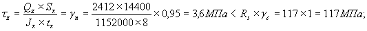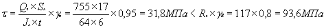 прочность на растяжение с изгибом обеспечивается. Проверка прочности на сдвиг По формуле (29) [3]