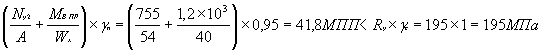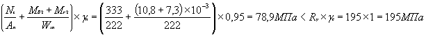 ветровой нагрузки: нормативной Продольное усилие Проверка прочности на растяжение с изгибом По формуле (50) [5] для сечений над средними опорами