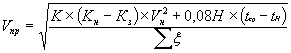 где: Kн, Kз - аэродинамические коэффициенты принимаются по СНиП 2.01.07-85 [4]; Vн - скорость движения наружного воздуха; к - коэффициент учета изменения скорости потока по высоте по СНиП 2.01.07-85; Н - разности высот от входа воздуха в прослойку до ее выхода из нее;