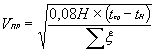 По указанным формулам определяется упругость водяного пара еi в характерных сечениях конструкции в годовом цикле. Если ei окажется больше максимальной упругости водяного пара Е, то в данном сечении может образовываться конденсат. 7.6.4. Определение параметров воздухообмена в прослойкеДвижение воздуха в прослойке осуществляется за счет гравитационного (теплового) и ветрового напора. В общем виде скорость движения воздуха в прослойках Vпр может определяться по следующим формулам: