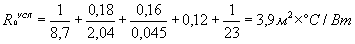 δi, λi - толщина м и коэффициент теплопроводности Вт/(м°С), утеплителя i-го участка ограждающей конструкции;