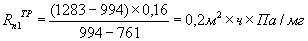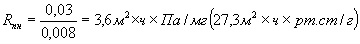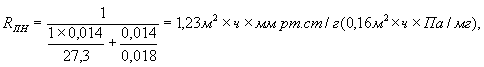 Расчетное сопротивление паропроницанию части ограждающей конструкции, Rпн, м2·ч·Па/мг, расположенной между наружной поверхностью и плоскостью возможной конденсации равно: