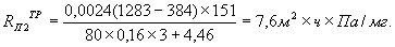 Требуемое сопротивление паропроницанию, при nm = 6,5