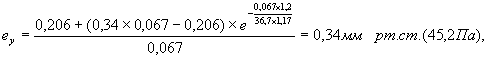 Далее приводим расчет с учетом выноса влаги из прослойки движущимся воздухом. Упругость водяного пара на выходе из воздушной прослойки кирпичной стены: расчет ведется для худшего, с точки зрения влагообмена, случая; при nm = 0,1
