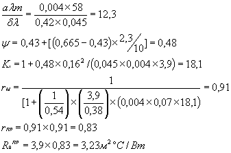 Следующим этапом расчетов является учет воздухозаборных швов и отверстий приведенной площадью 0,014 м2 на м2 экрана. Сопротивление паропроницанию условное, приведенное: формула (21) при ηm = 6,5
