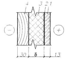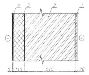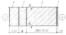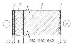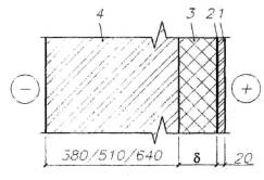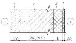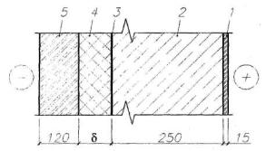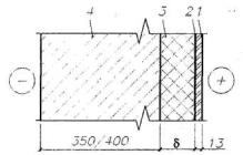 температура за отопительный период, 4. Продолжительность отопительного периода, Zht = 201 сут. 5. Температура воздуха внутри здания, tint = +20°С. 6. Относительная влажность воздуха, φint = 55%. 7. Значение среднемесячной температуры воздуха и парциального давления водяного пара приведены в таблице 4.1. 8. Фрагмент глади стены приведен на рис.4.2.
