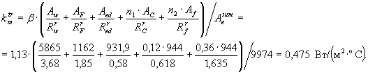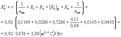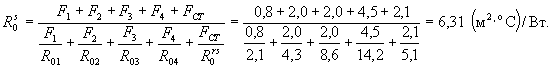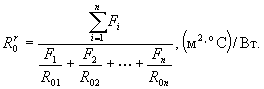 где Fi- площадь i-ой зоны фрагмента наружной стены, м2; Roi - сопротивление i-ой зоны фрагмента наружной стены, (м 2·°С)/Вт.