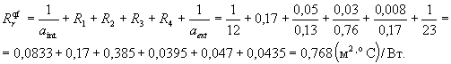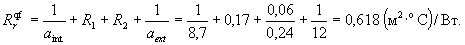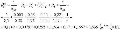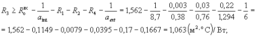 Принимаем (δ3)f = 0,05 м. Определяем фактическое сопротивление теплопередаче.