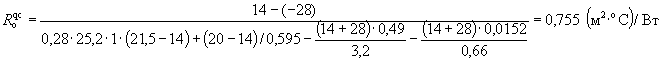 Фактическое сопротивление теплопередаче перекрытия находим по формуле