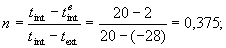 где n - коэффициент, принимаемый по таблице 4 СНиП 23-02; tint - расчетная температура внутреннего воздуха, °С; text- расчетная температура наружного воздуха в холодный период года, °С;