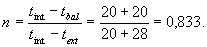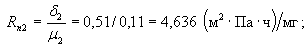 τх =20 - 10,95·(0,1149 + 0,0079 + 0,0395 + 1,1364) = 5,78 °С; Е0 = 923 Па. Rnн = 7,33 (м2·ч·Па)/мг; Rn = 2,1 + 0,333 + 1,1 + 0,093 = 3,626 (м2·ч·Па)/мг; η = (0,0024·(923 - 423)·151 )/7,33 = 24,7;