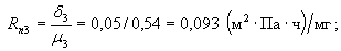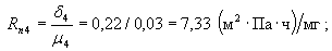 где ев - упругость водяного пара внутреннего воздуха, Па, при расчетной температуре и влажности этого воздуха; eext - средняя упругость водяного пара наружного воздуха, Па, за годовой период, определяемая согласно [3]. Определяем фактическое сопротивление паропроницанию (Rvp) части ограждения между внутренней поверхностью ограждения и плоскостью возможной конденсации. Rvp = 6б43 (м2·ч·Па)/мг